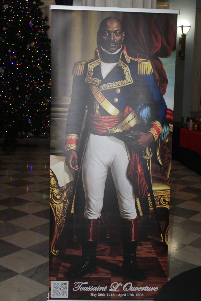 The celebration was a profound visual experience that merged the ancestral with the modern. Standing prominently in the rotunda was a striking life-sized banner of Jean-Jacques Dessalines, the founding father of Haiti. This historical tribute served as a silent witness to the proceedings, bridging the gap between the revolutionary victory on the plains of Vertières and the modern leaders present in the room.